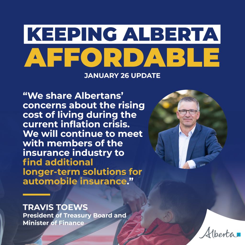 “We share Albertans’ concerns about the rising cost of living during the current inflation crisis. We will continue to meet with members of the insurance industry to find additional longer-term solutions for automobile insurance,” said President of Treasury Board and Minister of Finance Travis Toews.